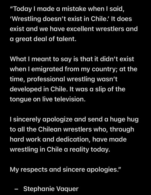 Ich entschuldige mich aufrichtig und sende allen chilenischen Wrestlern, die